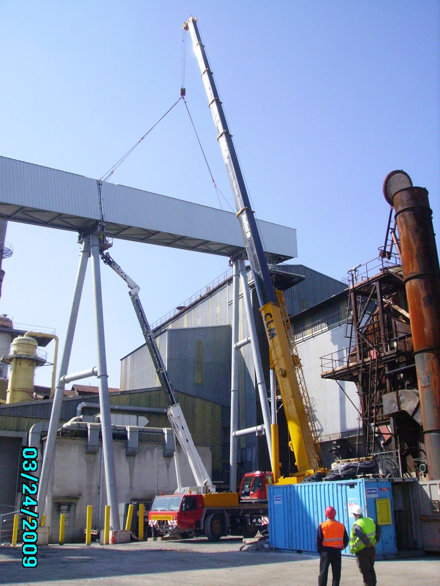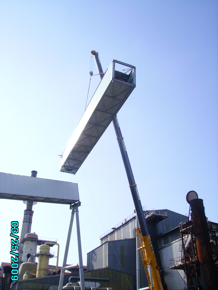 Cheminée de 4,4 m diamètre,d’une hauteur de 54m et d’un poids de 90 tonnes.